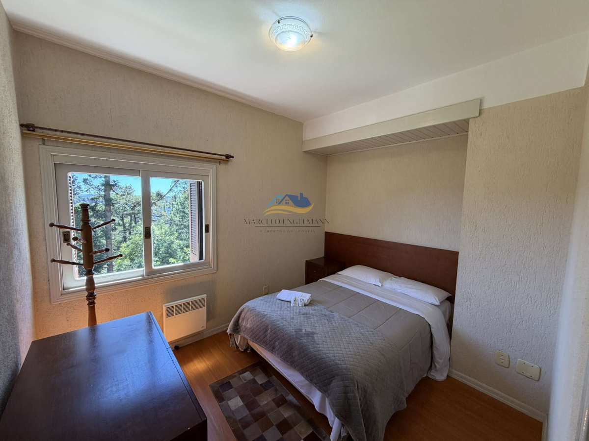 Ele conta com 2 dormitórios, sendo 1 suíte, 2 banheiros e uma churrasqueira para momentos de lazer. Além disso, oferece 1 vaga de garagem coberta. Uma excelente escolha para quem quer aproveitar o charme de Gramado e ainda garantir uma renda atrativa.