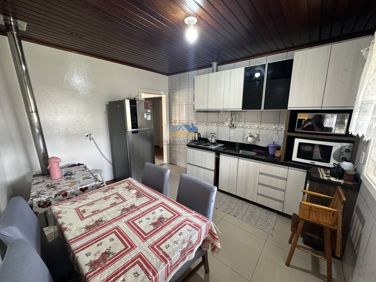 Conta com 3 dormitórios, banheiro social, sala de estar, cozinha, fogão a lenha, garagem, churrasqueira, área de serviço. Possui amplo pátio com plantação e gramado. A Residência conta também com Energia Fotovoltaica com estrutura em cima do telhado.