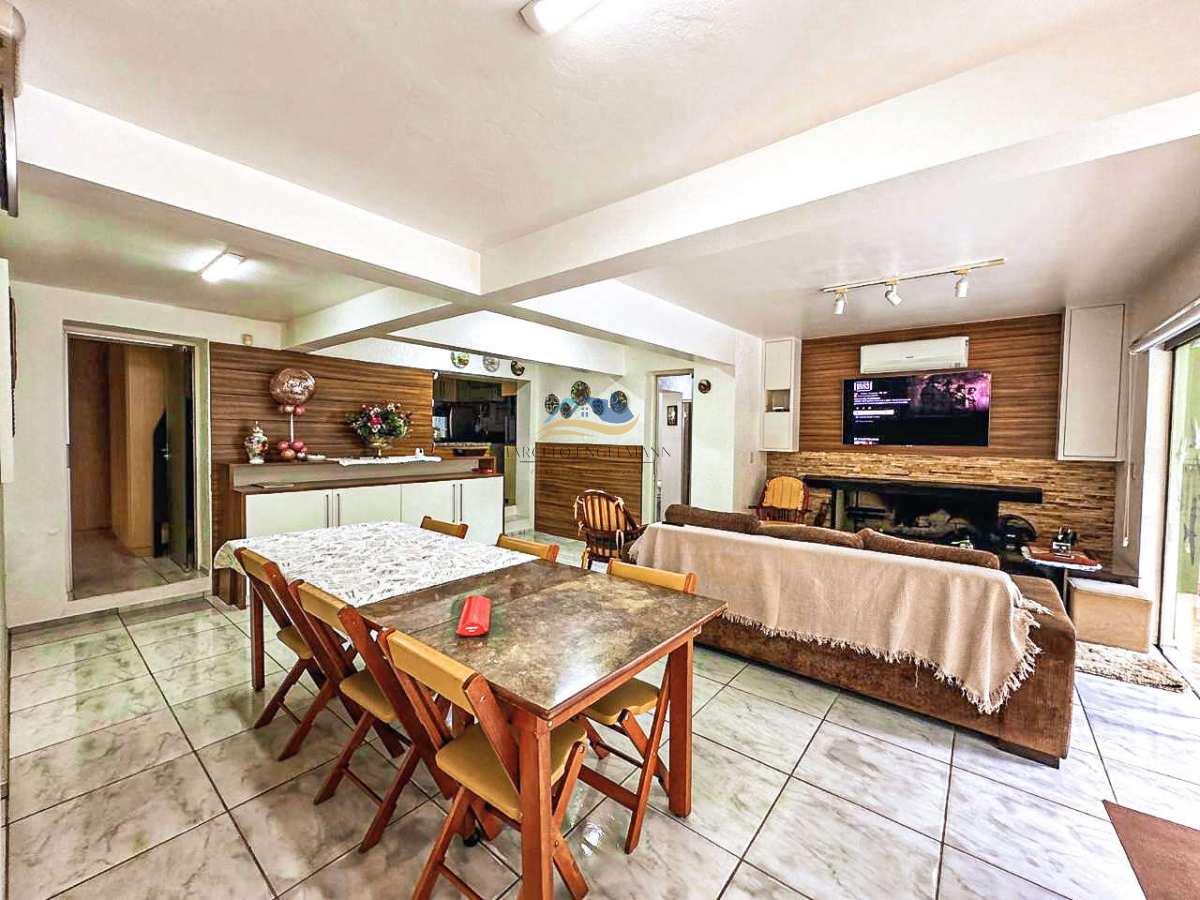 A área social dispõe de uma aconchegante sala de estar com lareira, ideal para momentos de convivência em família. Para o lazer, a casa oferece ainda uma sala de jogos equipada com mesa de sinuca e Fla-Flu, perfeita para reunir amigos e familiares.