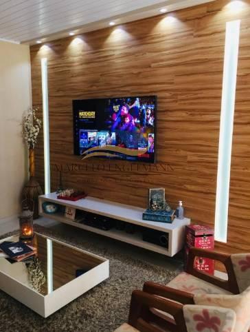 Entre os pontos a se destacar no imóvel, estão móveis sob medida na sala e cozinha, piso porcelanato, iluminação com led, ar condicionados na sala e dormitório de casal.