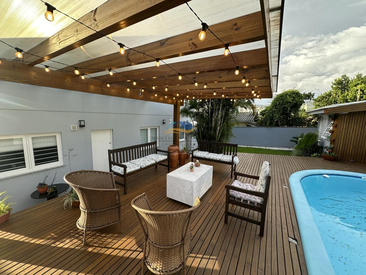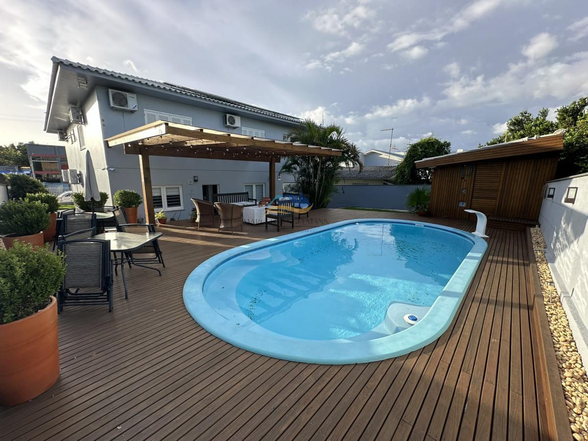 Além disso, essa casa possui uma ampla sala de estar, uma cozinha completa e uma área de serviço, tudo pensado para o seu conforto e praticidade. E se você gosta de receber amigos e familiares, vai adorar o espaço externo, com um lindo jardim, deck de madeira, piscina, e um amplo percolado preparado com iluminação, tudo pensado com muito carinho. Além disto possui espaço para academia, outra sala de estar com lareira no segundo pavimento, piscina aquecida e energia solar.