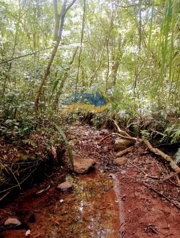 Riacho passando sobre o terreno, mata preservada, roça produzindo, diversidade de frutíferas, água de poço e encanada.