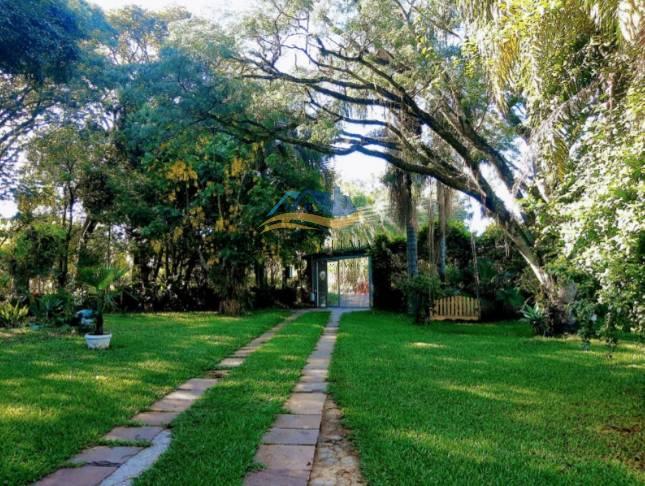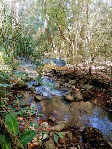 Terreno com área de 3.850 m², pátio com paisagismo, mata, pomar e riacho.